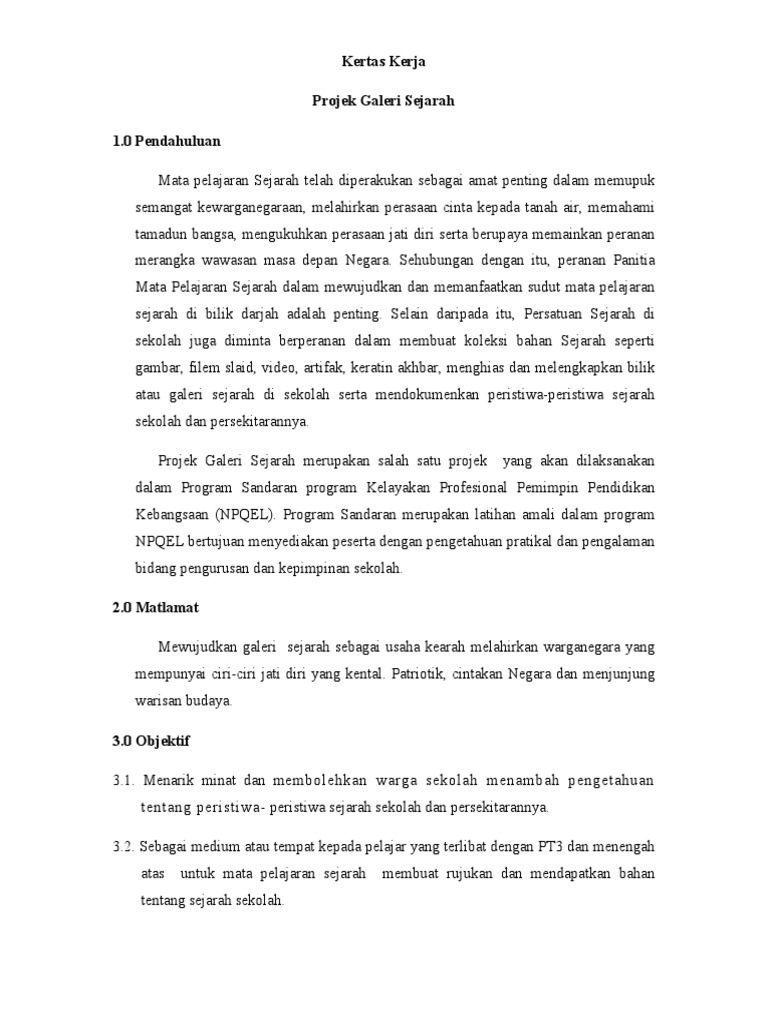 Kertas Kerja Projek Galeri Sejarah Pdf Pdf